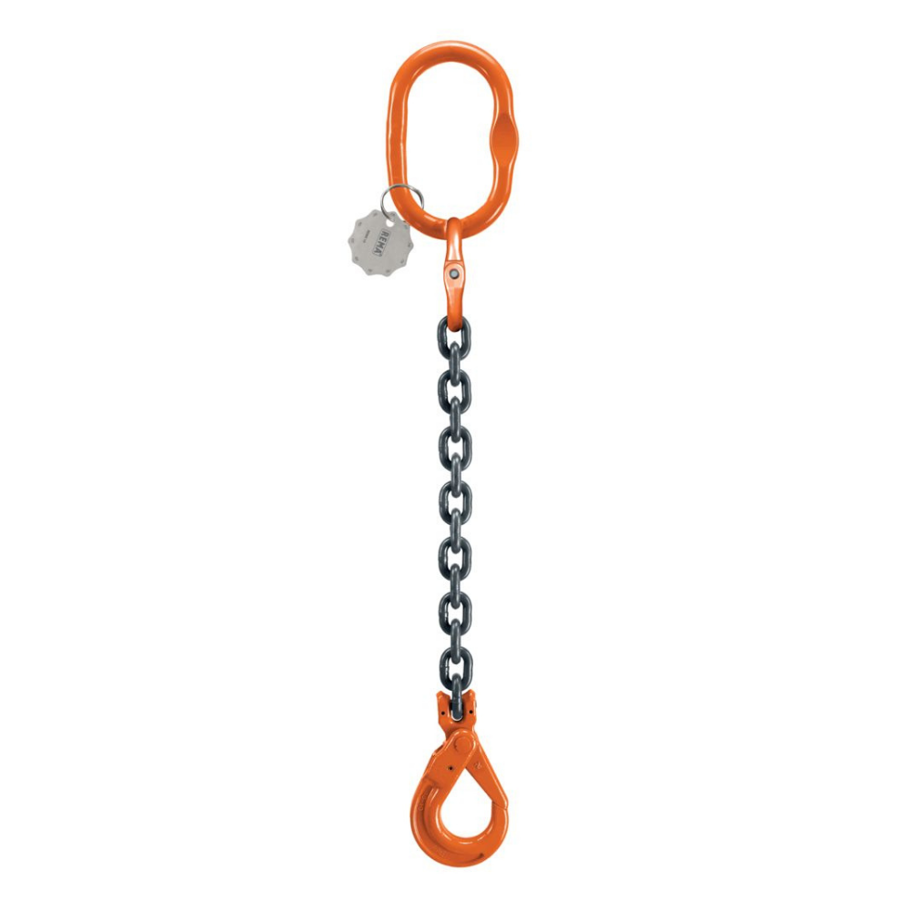 Eslingas de cadena REMA G10 de 1 ramal compuesto de anilla RML, conectores de cadena RCX y gancho directo de alta seguridad RCS.
