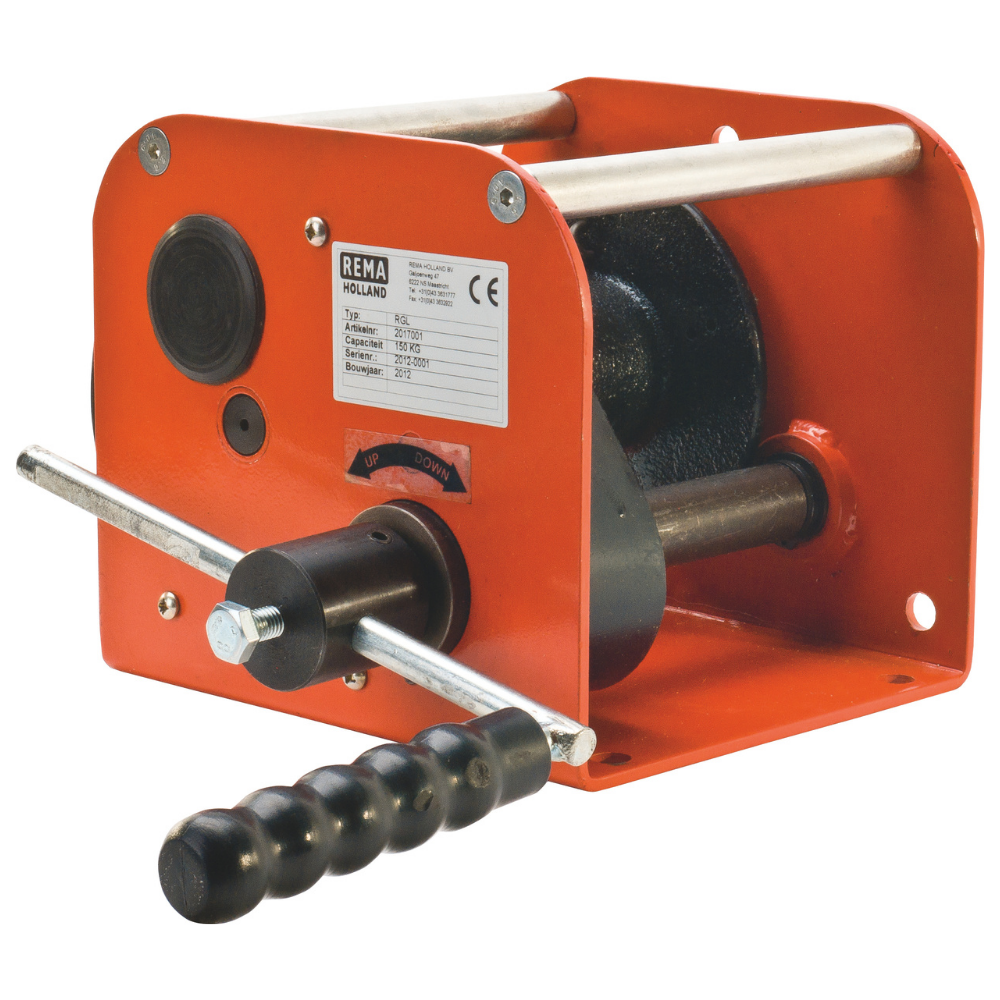 Cabrestante manual de engranaje recto y carrete libre REMA RGL, el cual puede ser usado tanto para trabajos de elevación como de arrastre.
