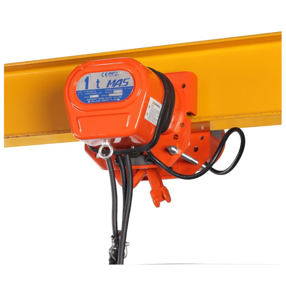 Este carro eléctrico sólo se puede combinar con el polipasto eléctrico Elephant modelo FAH o FBH 400V.