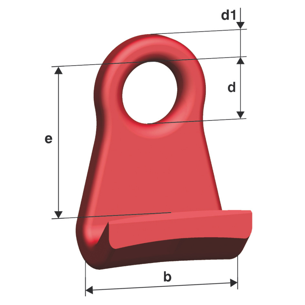 | Modelo | CMU (kg) | e (mm) | d (mm) | d1 (mm) | b (mm) | Peso (kg) | Código |