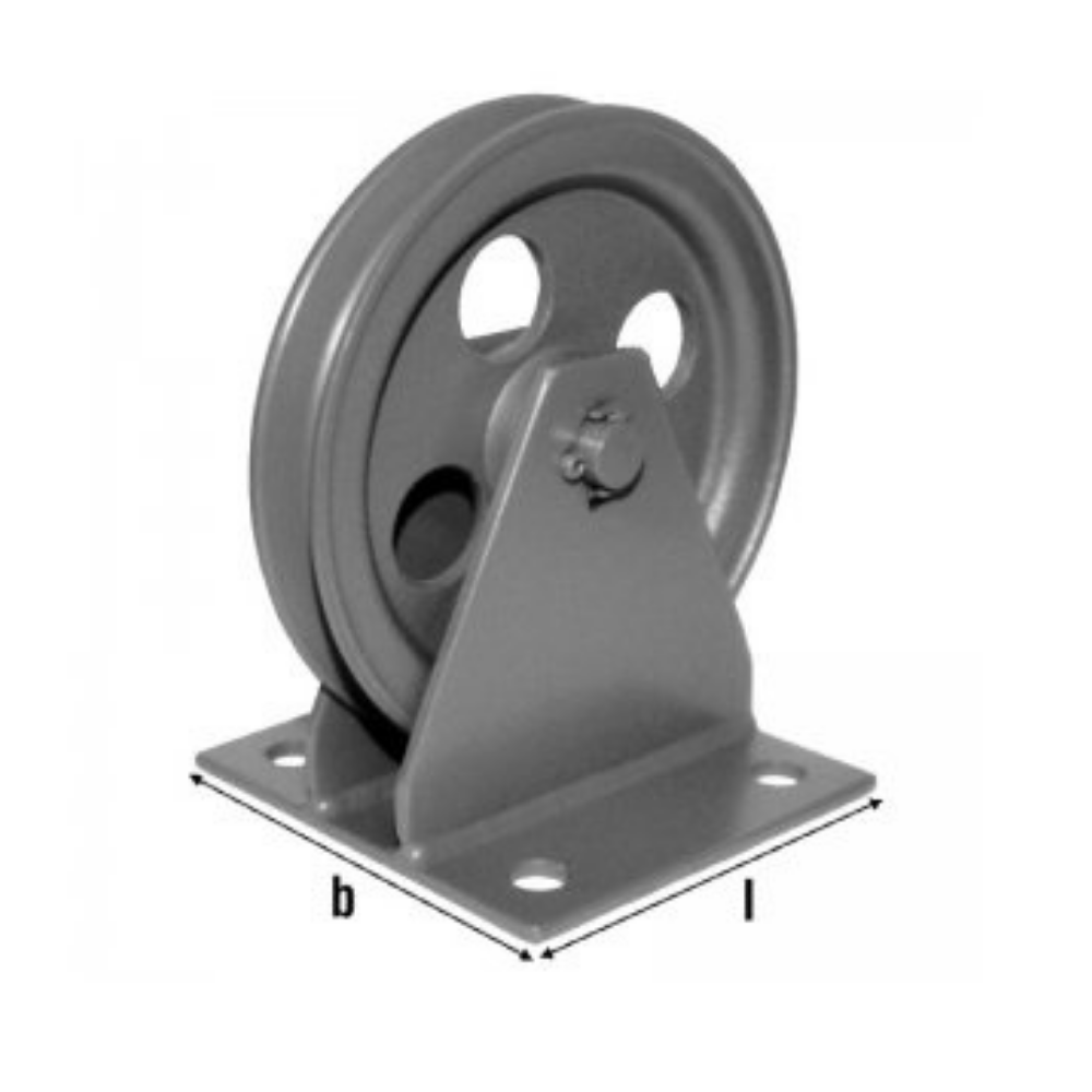 Polea redireccional de cable para cabrestantes manuales de suelo y pared con soporte fabricado en acero revestido.