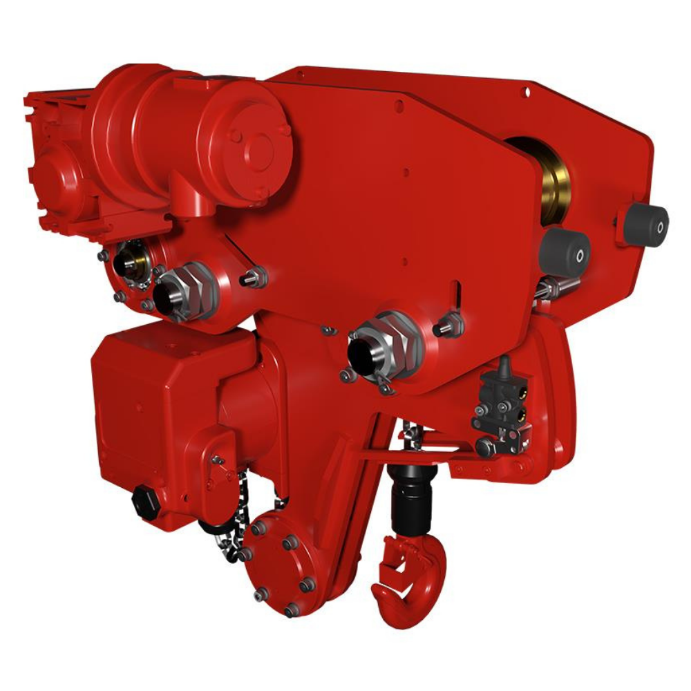 Polipasto y carro neumático TCR-1000-LHR construidos con baja altura perdida que lo hace ideal para su uso industrial, ambientes marinos y off-shore. Los carros neumáticos de baja altura perdida se encuentran disponibles en su versión estándar o resistente a las chispas con ruedas de bronce y ganchos recubiertos de bronce para ser usado en zonas peligrosas de explosión con certificación ATEX.