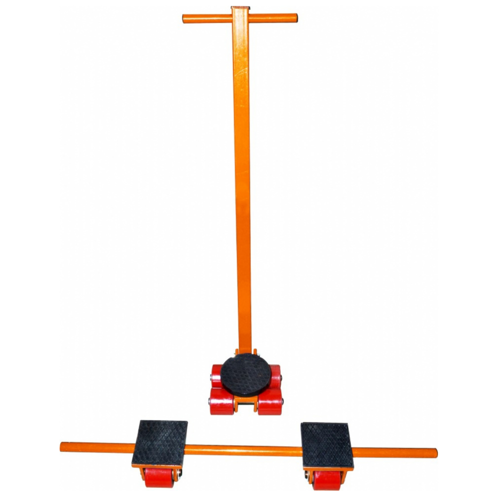 Set de tanquetas de carga compuesto de 2 patines con vara de unión y tanqueta de carga con plataforma direccional y palanca para un fácil manejo de la carga.