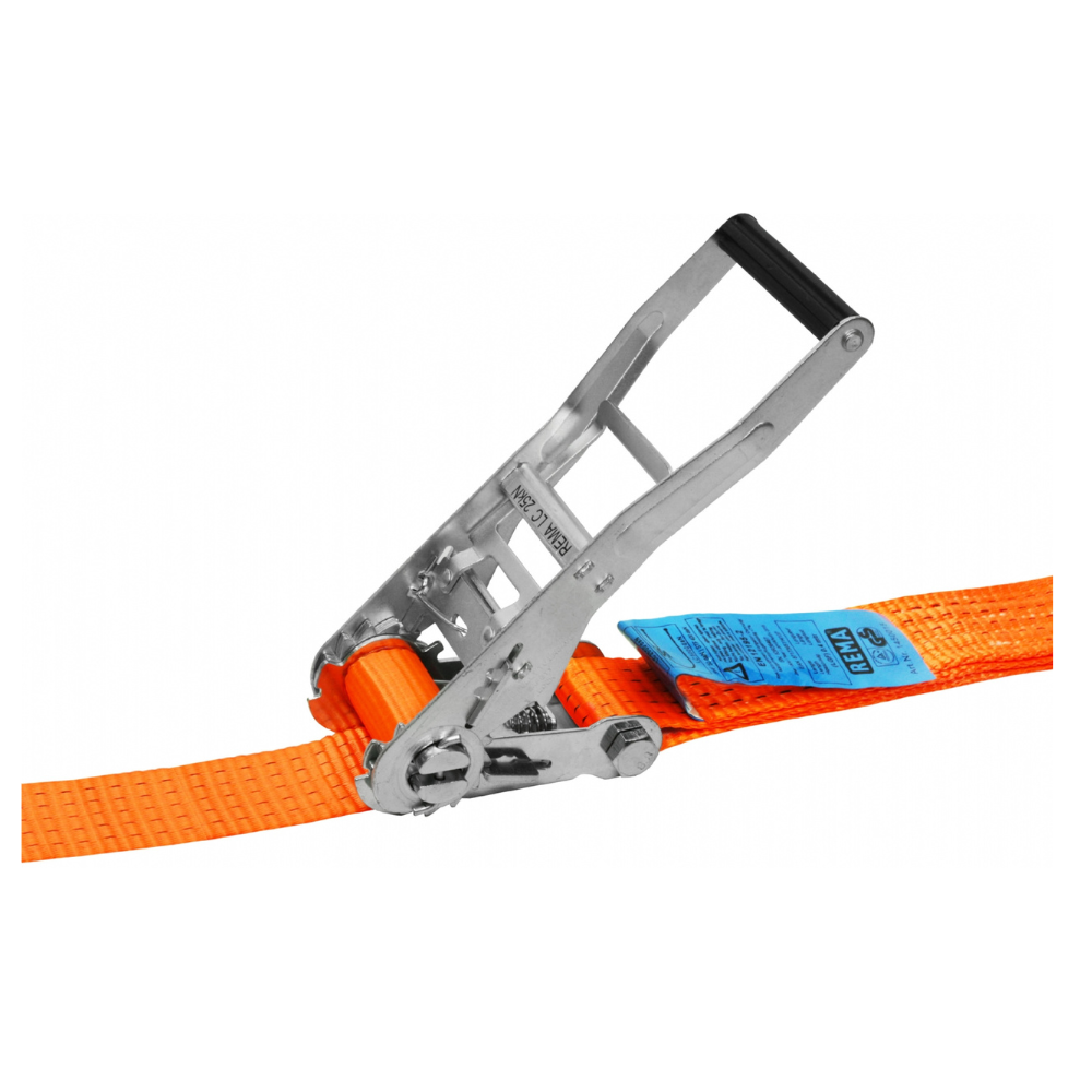 Sistema de trincaje de 50mm de ancho de cinta con trinquete extendido que proporciona una mayor fuerza de pretensado.